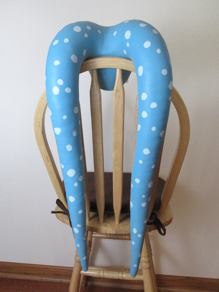 Unlike latex lekku, which can begin to crack after a while, silicone lasts quite a long time. My oldest silicone headpiece is nine years old, and it is still in perfect shape even after traveling back and forth across the country for quite a few conventions. Silicone is prone to tearing under some conditions, however. It won't tear without a starting point, so you must be careful not to create a weakened point where a rip might get started. This is primarily a concern around the edges of the head opening. When trimming away excess silicone, make sure to cut a straight line with your scissors. If you leave a jagged edge, that point can begin to tear. Cut a smooth, even line and it won't be a problem! Stuffing: The lekku are filled with pillow stuffing. I reinforce the top curves of the lekku with a layer of firmer silicone and then they are filled with a soft expanding foam which preserves the shape of the curve. Please note that because of the wonderful stretch of silicone, sometimes it is really difficult to remove every trace of 'sagging' in that area where the lekku curve out from the head. Even after years of making silicone lekku I've never been able to fully eliminate that issue!
