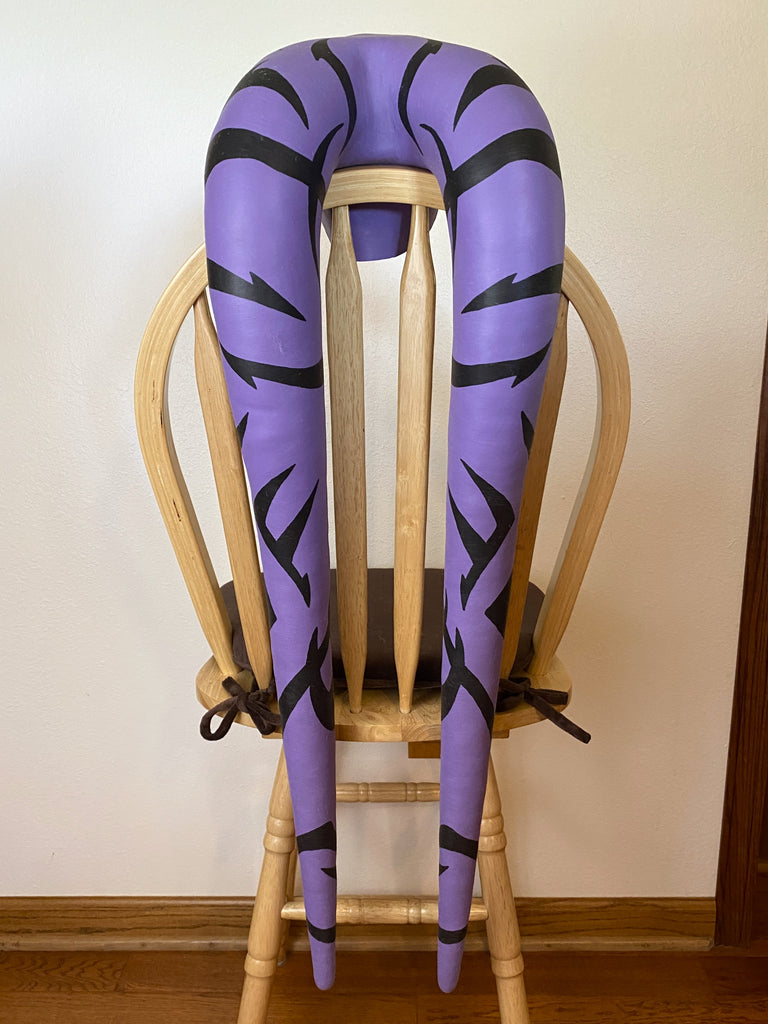 The lekku are filled with pillow stuffing. I reinforce the top curves with a soft expanding foam which preserves the shape of the curve and holds the pillow stuffing in place.